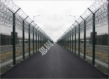 358密紋網監獄防護網主要用于:軍事、機場、安全部隊、監獄、輕軌、城際列車等的重要隔離措施。