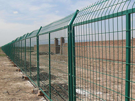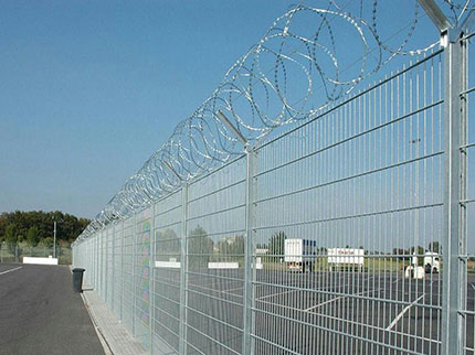 軍事基地防護網外觀尺寸為1700×3000mm(立柱中心距),邊框采用30×50×2.0mmd的矩管制成,網片由直徑為4mm的鋼絲焊接,網孔75×150mm,立柱用40×40×2.5mm的方管制成。立柱、網片鏈接板采用90°折角,厚度4mm鋼板制成,金屬網應進行鍍鋅后防腐浸塑處理,防護柵欄安裝做到“嚴、直、齊、美”,線路封閉嚴實,不留間隙;沿線路方向順直,不忽遠忽近;防護柵欄頂端和下端縱向過渡平滑整齊,不忽高忽低;要求整體效果美觀,避免給人凌亂感覺。安裝前應平整場地,柵欄底部距離地面高度按10cm設計,不滿足時,應進行回填處理。
